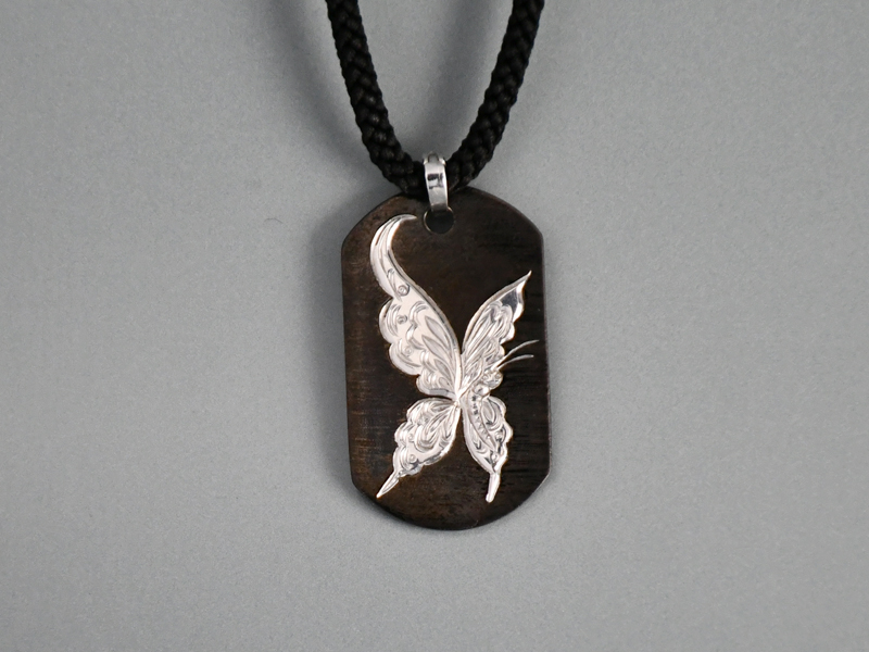 「シルクコードネックレス『蝶』」 ※撮影時の環境やディスプレイの特性上、形状や色彩の印象が実物と異なる場合があることをご承知おきください。 ※マグネットを使用しているので、ペースメーカーなどを体内に装着されている方はご使用をおやめください。 購入フォーム 商品名 ■ シルクコードネックレス『蝶』 価格 : ¥ 88,000(消費税込) ■ 買物カゴの中身を確認