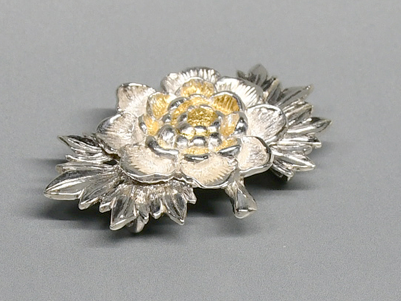 純金象嵌牡丹 帯留め ※撮影時の環境やディスプレイの特性上、形状や色彩の印象が実物と異なる場合があることをご承知おきください。 購入フォーム 商品名 ■ 純金象嵌牡丹 帯留め 価格 : ¥ 385,000(消費税込) ■ 買物カゴの中身を確認
