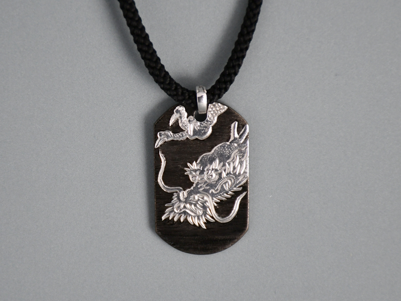 龍の細やかな鱗は彫金によって彫られ光の当たり方で多彩な輝きへ変化します。