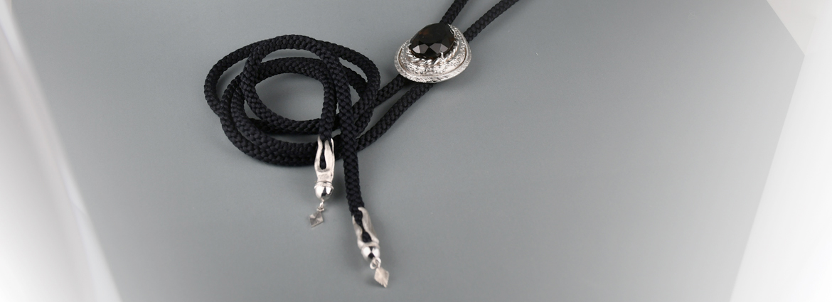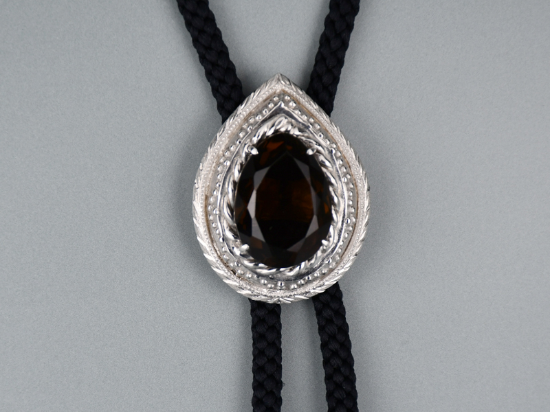 ティアドロップ型のループタイには大ぶりのスモーキークォーツがセッティングされひかえめな色合いながらも存在感があります。