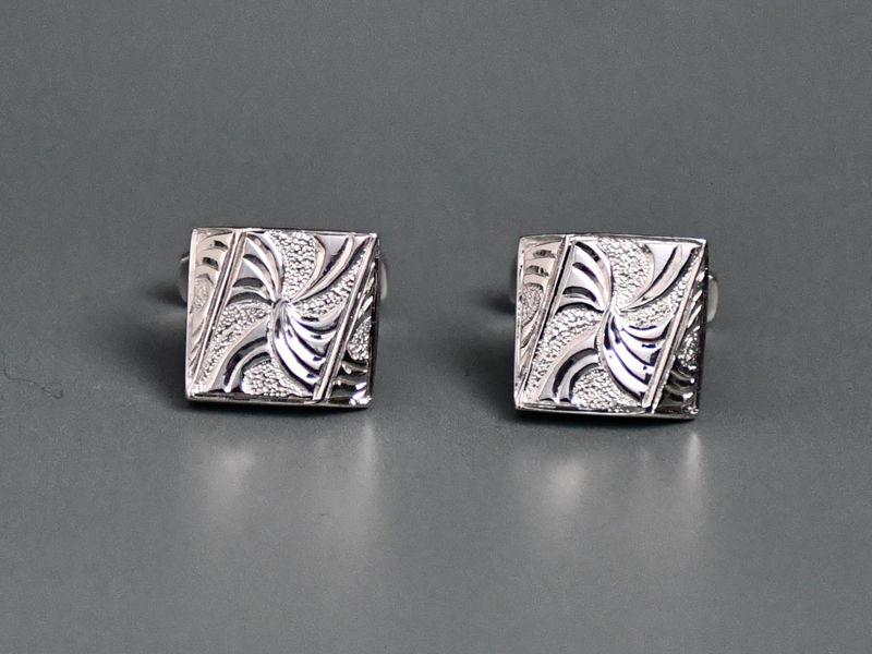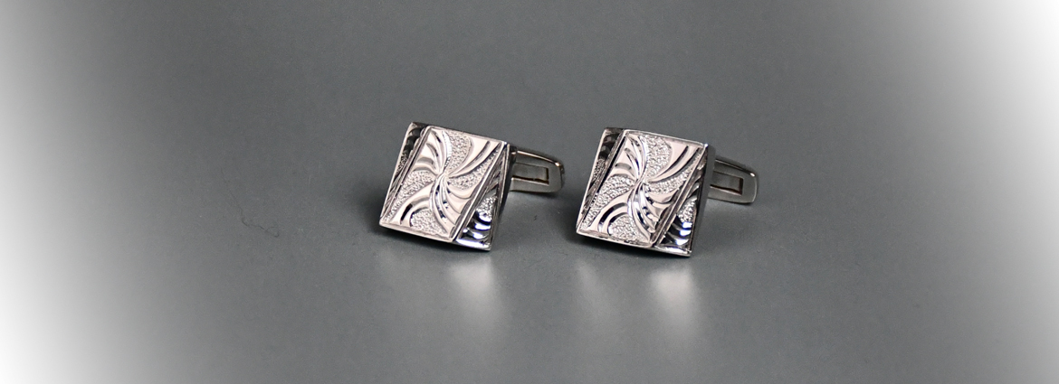 波模様を表現した曲線の輝きが美しいカフスはシルバー色のみなのでどのようなシャツにもなじみます。