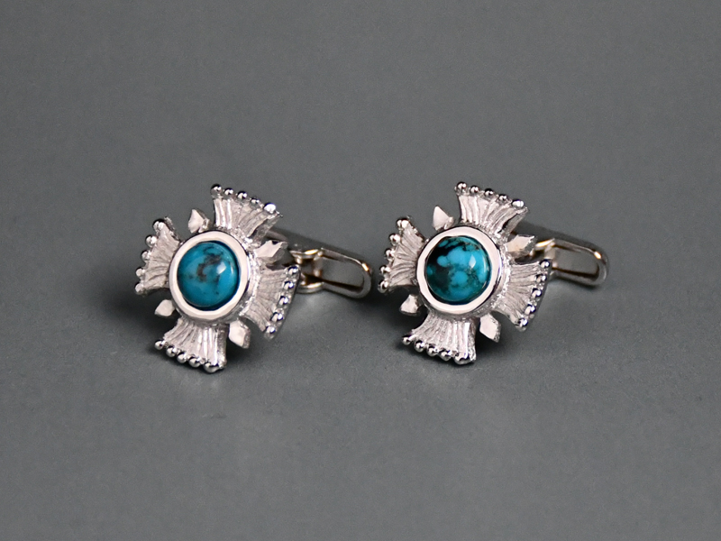 クロスモチーフをターコイズを組み合わせたネイティブ風の仕上がりのカフスはプレゼントにも最適です。