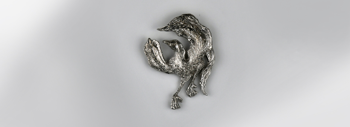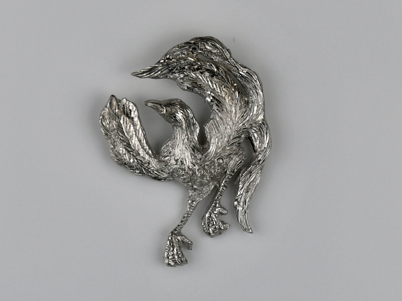 伝説の鳥「鳳凰」を彫金で細部まで表現した芸術品と呼ぶにふさわしい逸品です。