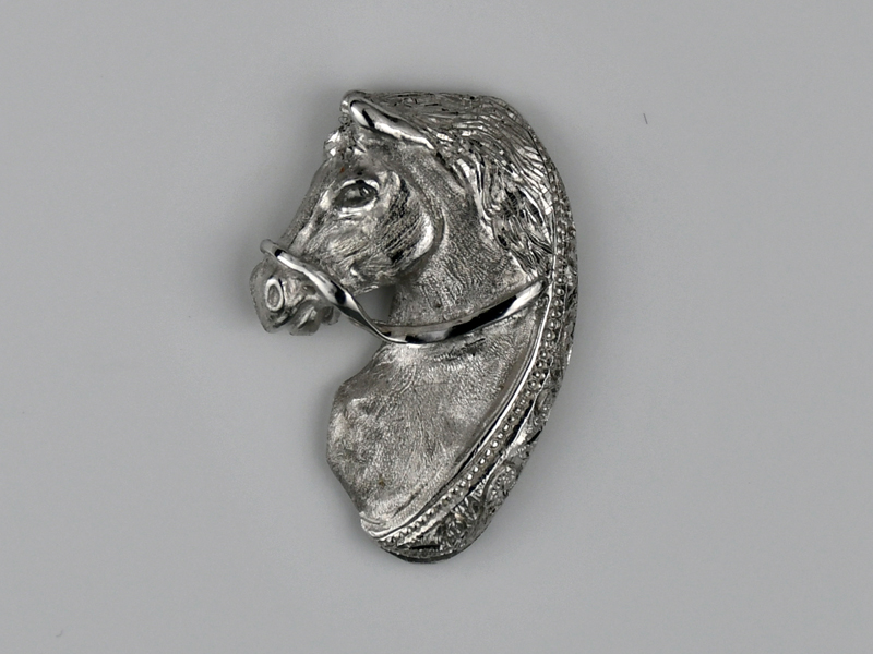 馬にアラベスク模様を組み合わせた馬のラペルピンは胸元を華やかに装います。