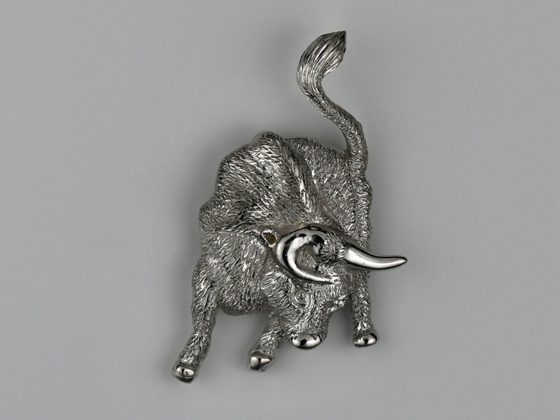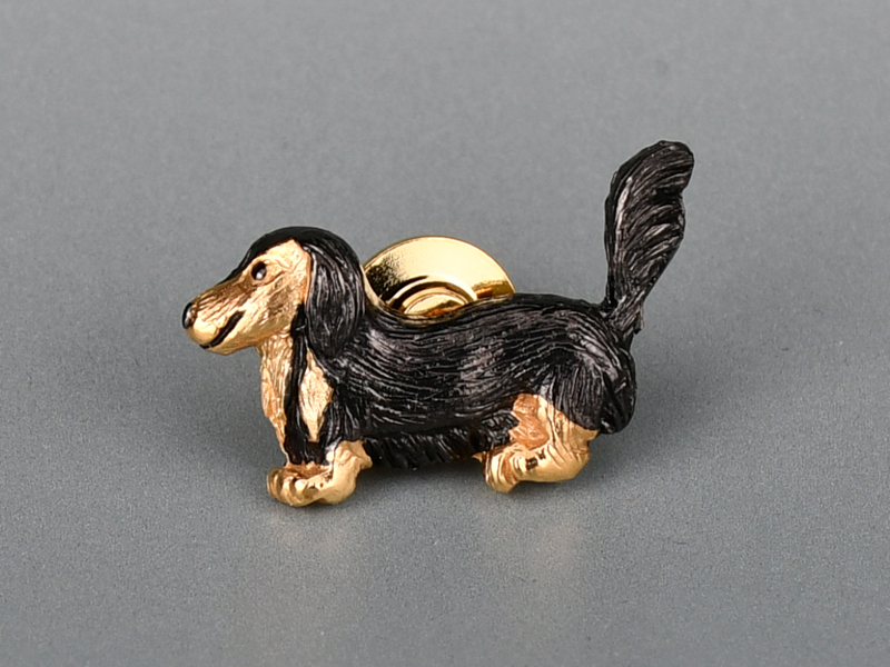 毛並みまで困幕彫金で表現したピンズは手仕事ならではの味わいがあり、チャーミングな笑顔に心が和みます。