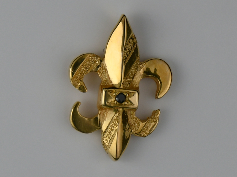 K18メッキとブラックダイヤの組み合わせにより高級感のあるユリの紋章に仕上がっています。